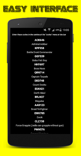 Here you'll see an option to input a code. Jul 12, 2021 · these lego star wars: The complete saga cheats will save you a lot of leg work unlocking things like characters, vehicles, abilities and powers. 3.go to negotations (free play ),if your asking why:well it's because you can go certain areas that story mode can't. 4.go to the bar and buy all the characters.